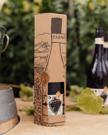 Farníkovo kvevri vám můžeme dodat také v originálním hexagonovém obalu s kresbou zobrazující proces metodu výroby kvevri vína.