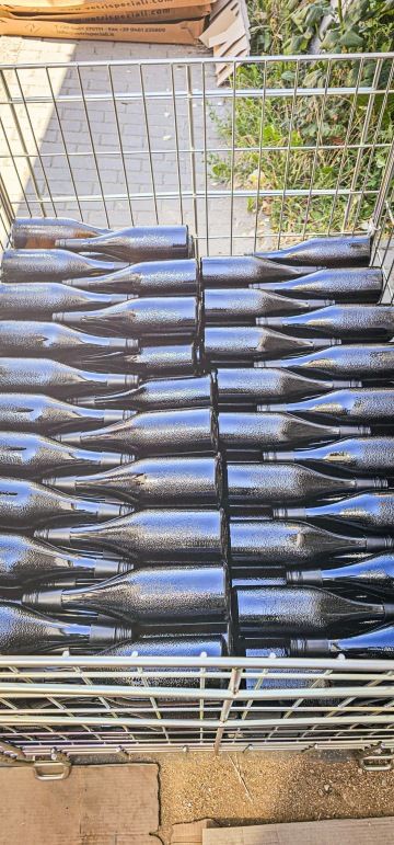 Stáčení do lahví – 100% recyklované „Wild Glass“ lahve navržené pro tento typ vína