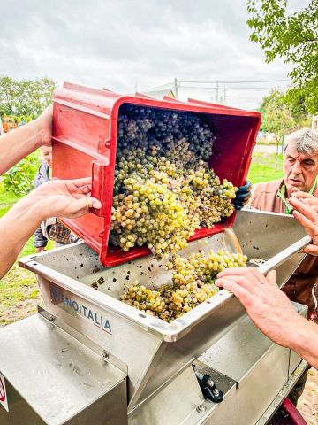 Sklizeň – hrozny Veltlínského zeleného z Pálavy (cukernatost 24°)