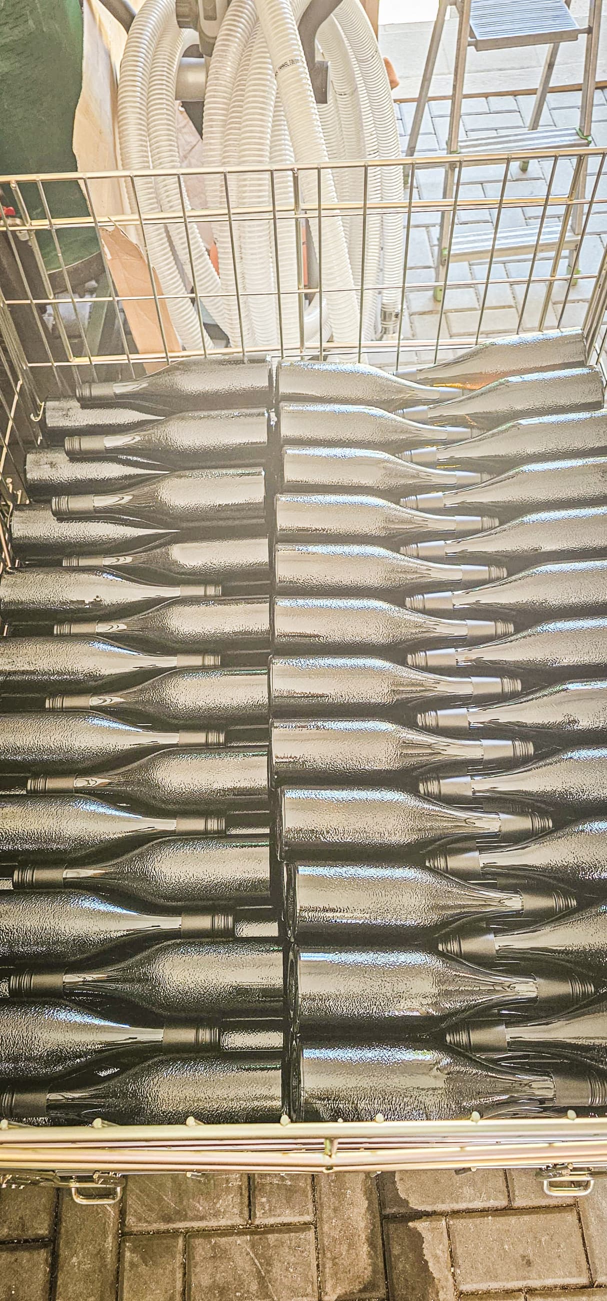 Stáčení do lahví – 100% recyklované „Wild Glass“ lahve navržené pro tento typ vína