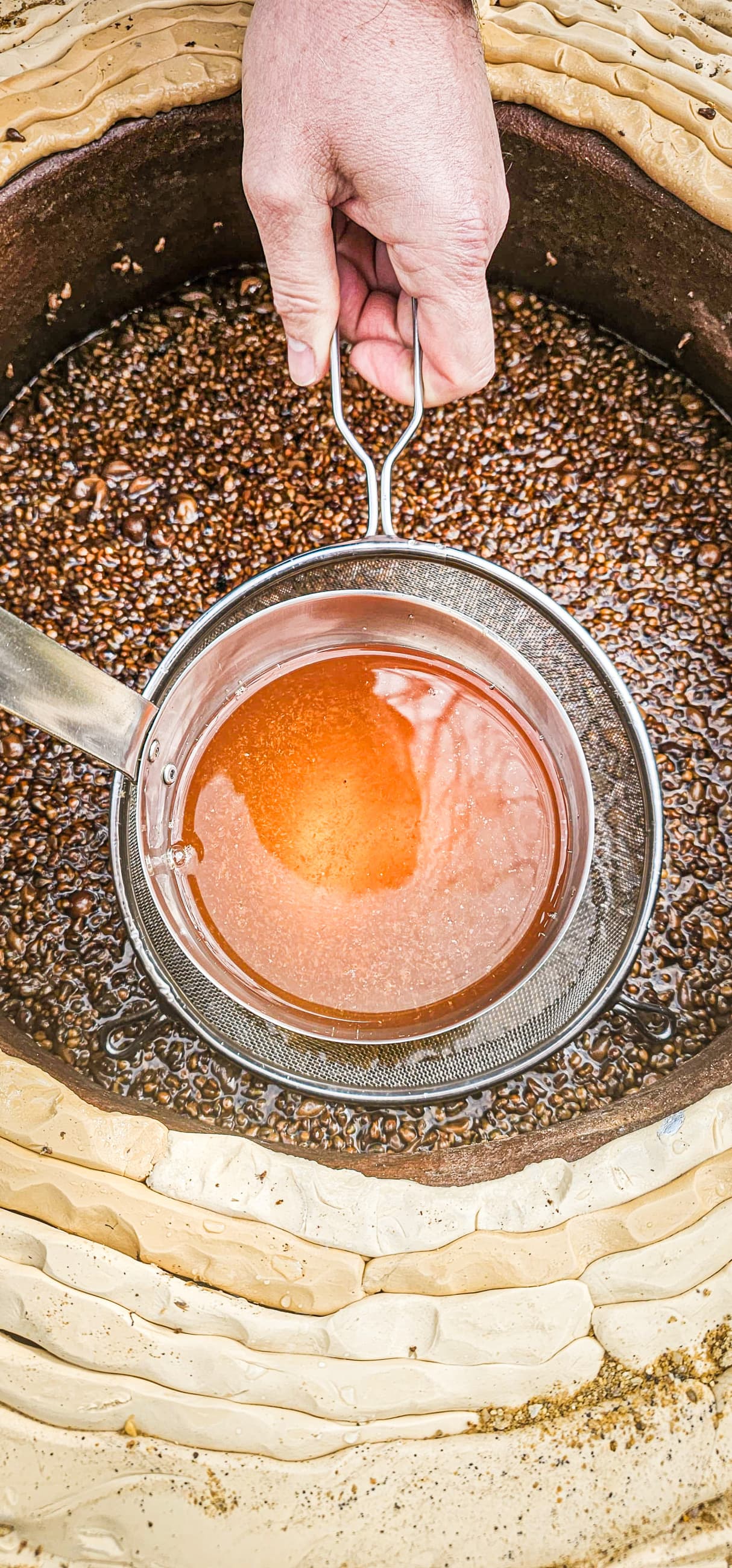 Klíčovým prvkem je špička kvevri. Semínka hroznů, která dokvasí, klesají ke dnu, kde jsou překryta vrstvou kvasnic a slupek. Tato přirozená bariéra chrání víno před hořkostí a zároveň zajišťuje jeho přirozenou filtraci.