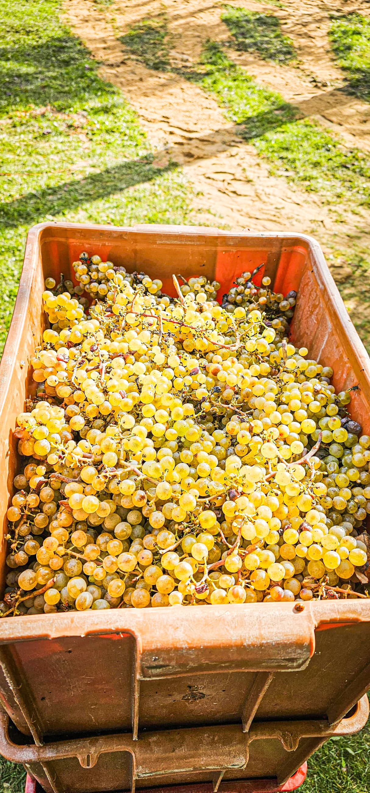 Sklizeň – hrozny Veltlínského zeleného z Pálavy (cukernatost 24°)
